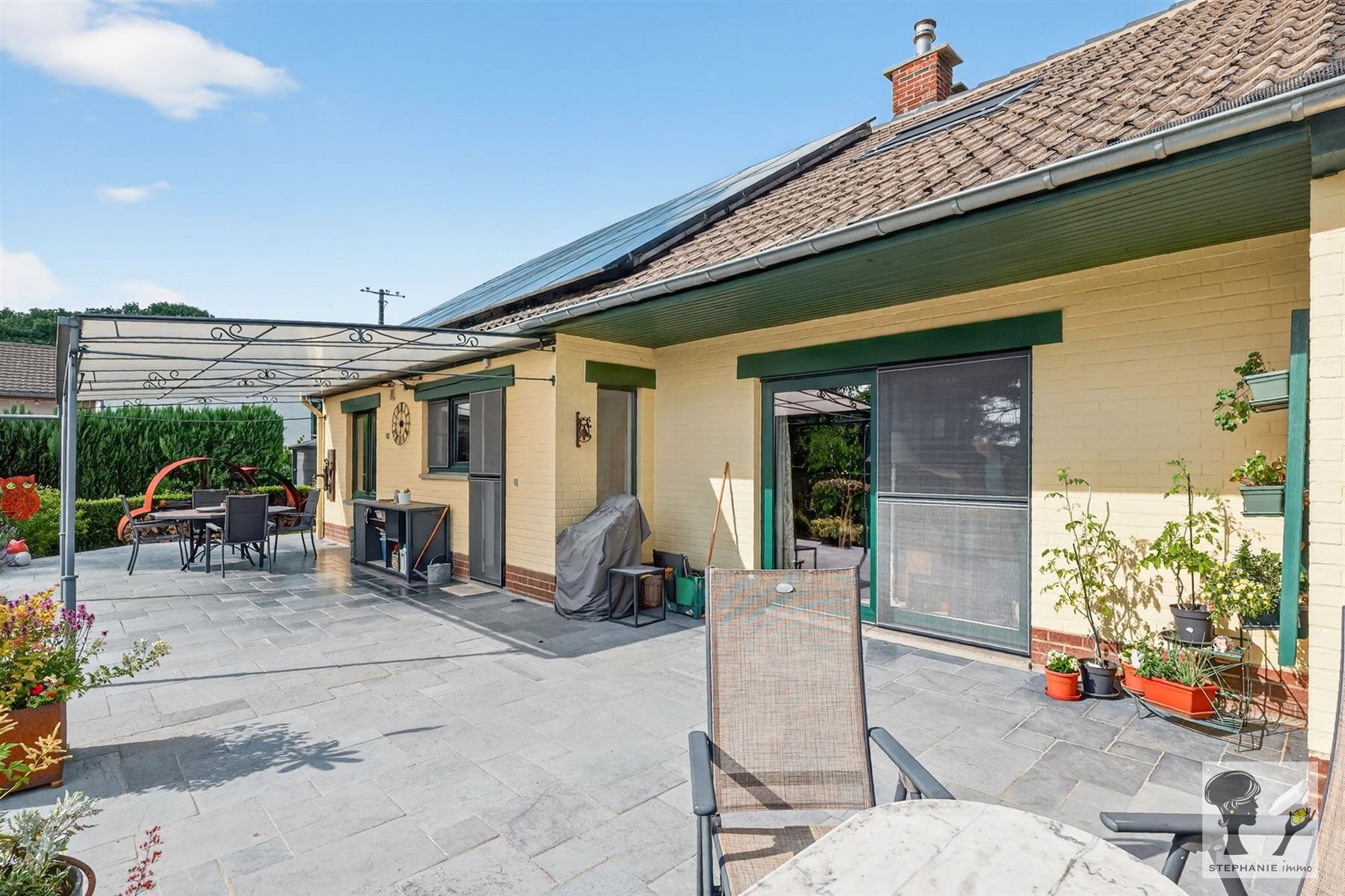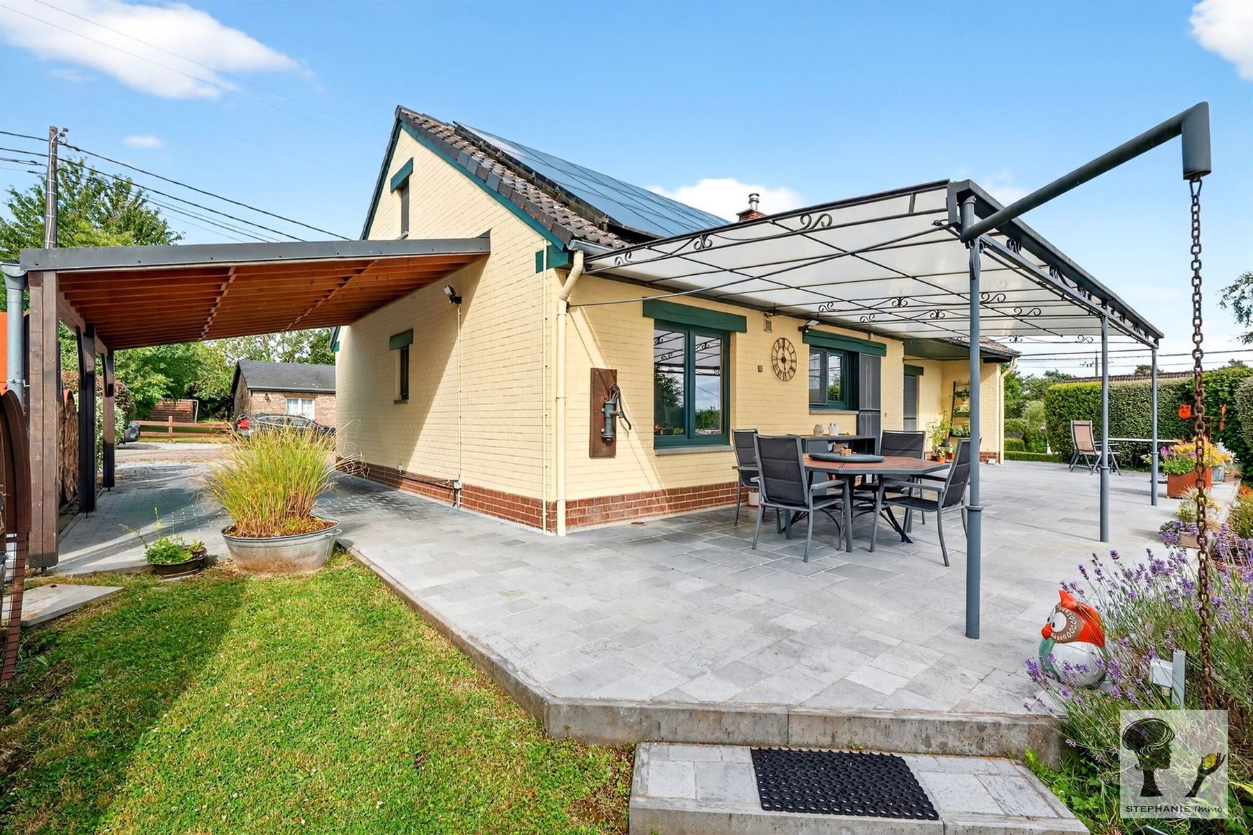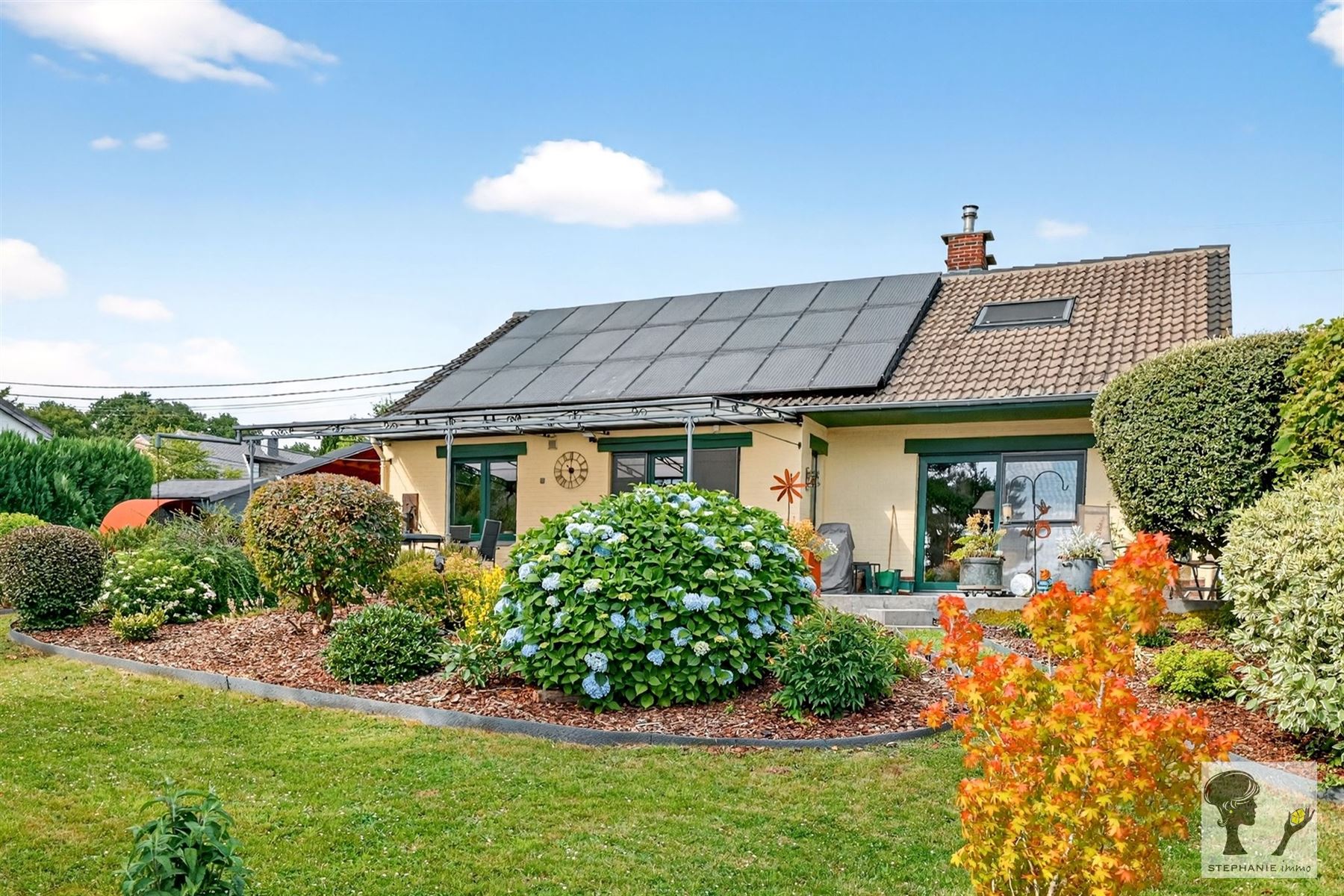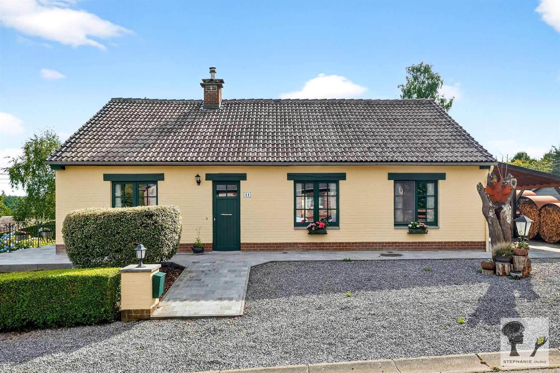 Un descriptif très complet avec documents téléchargeables est visible sur www.stephanie.immo. Une visite ? Prenez rdv en ligne sans tarder via notre site sur la page du bien en cliquant sur "planifier une visite". Stéphanie.immo vous présente cette charmante maison 2 chambres, habitable de plain-pied, idéalement située à Gesves. Elle est située dans un cadre paisible, tout en restant proche des facilités, et est adaptée aux personnes à mobilité réduite. Voici un aperçu de son agencement : *RDC: hall d'entrée, lumineux séjour ouvert sur une terrasse, spacieuse cuisine équipée, SDB avec WC, bureau et bibliothèque (pouvant faire office de chambre (13m2)). *1er : hall de nuit, 2 grandes chambres (+-17,3m2 et 23,3m2) dont une avec dressing. *Sous-sols : garage et caves. Le tout érigé sur un beau terrain aménagé d'un peu plus de 1000m2 avec chalet de jardin ainsi qu'un carport. D'un point de vue énergétique : c.c. mazout (chaudière de 2021), K7 à bois, châssis DV PVC (2018), 24 panneaux photovoltaïques, citernes d'eau de pluie (contenance totale 5000L). PEB C (253 kWh/m².an - n°20231022007518). Électricité CONFORME. Cette maison n'attend plus que vous ! Une question? Contactez Stéphanie via [email protected] ou au 0456.13.47.20. Faire offre à partir de 349.000€ (sous réserve d 'acceptation des propriétaires). Les superficies et dimensions sont mentionnées à titre indicatif.